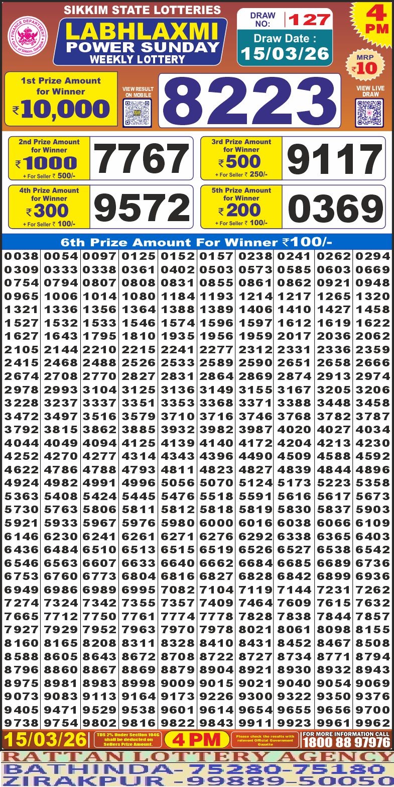 RESULTLABHLAXMI POWER SUNDAY WEEKLY LOTTERY 15.03.2026