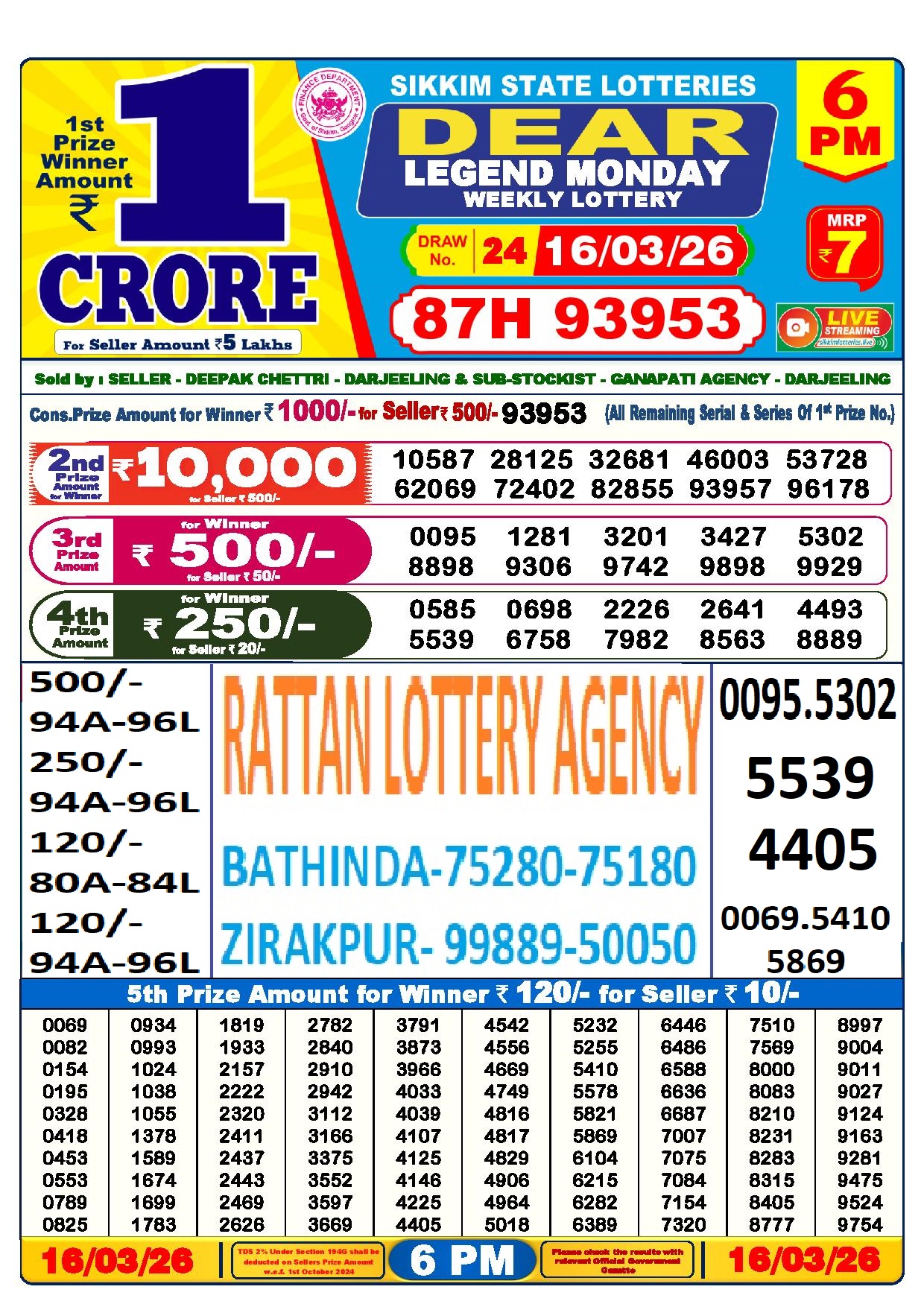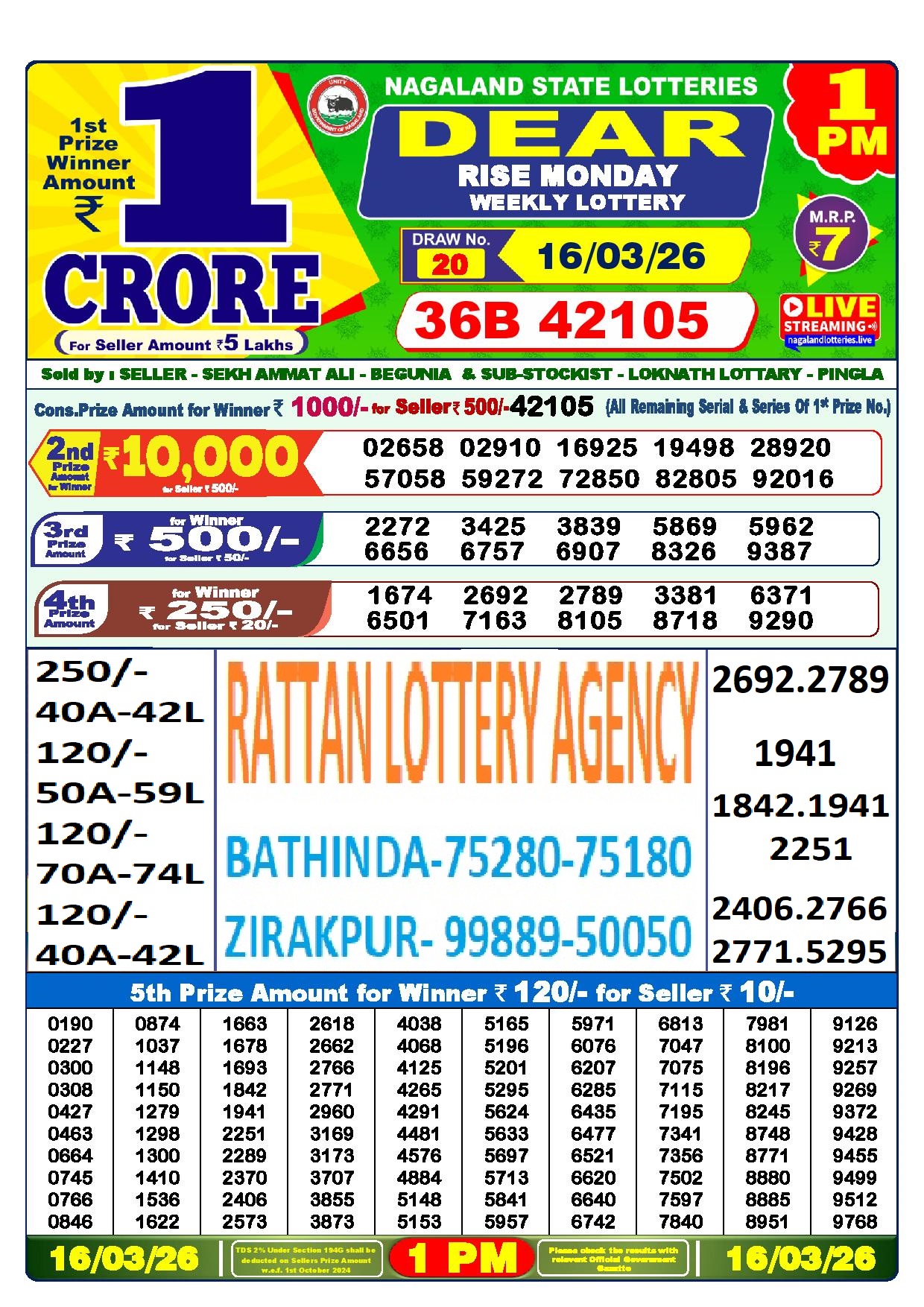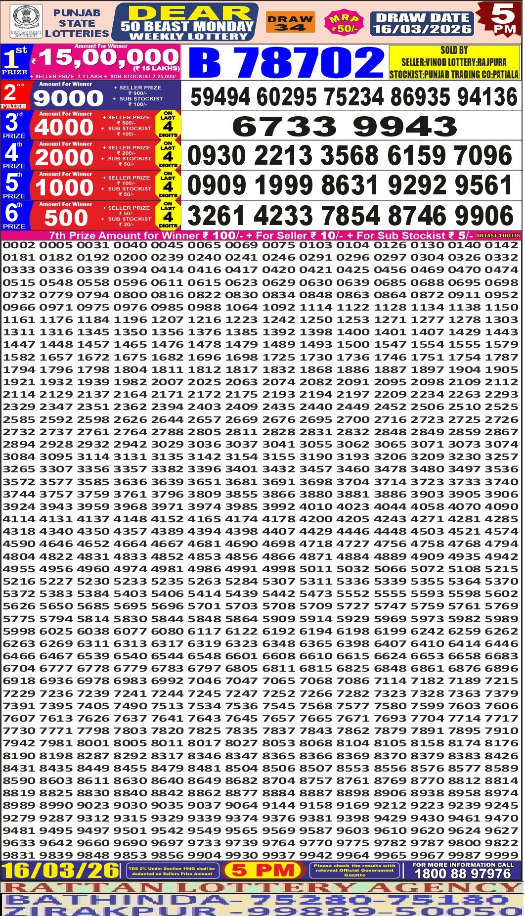 RESULT DEAR 50 BEAST MONDAY WEEKLY LOTTERY 16.03.2026