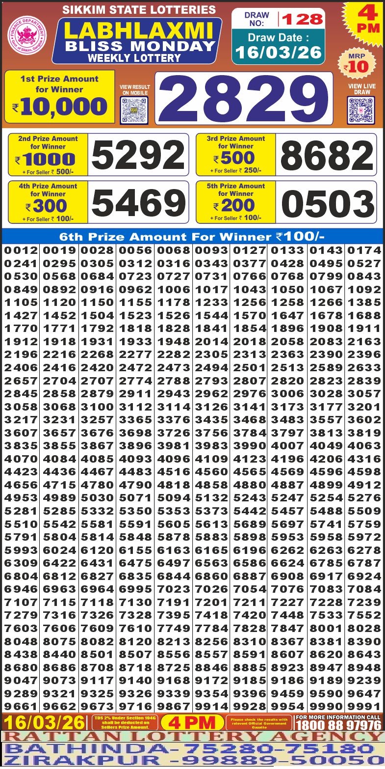 RESULT LABHLAXMI BLISS MONDAY WEEKLY LOTTERY 16.03.2026