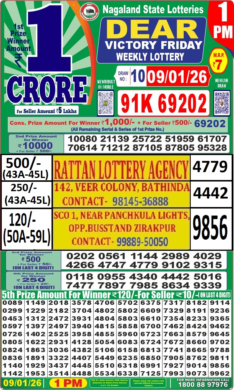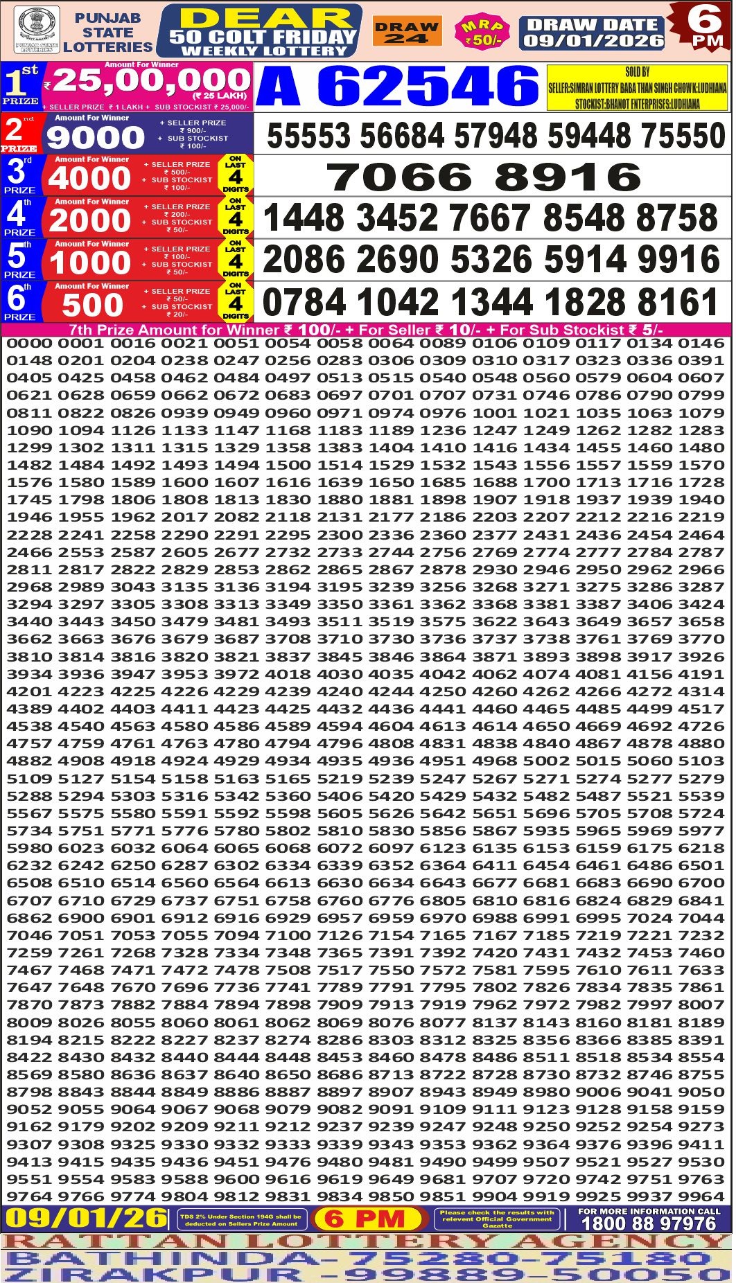 RESULT DEAR 50 COLT FRIDAY WEEKLY LOTTERY 09.01.2026