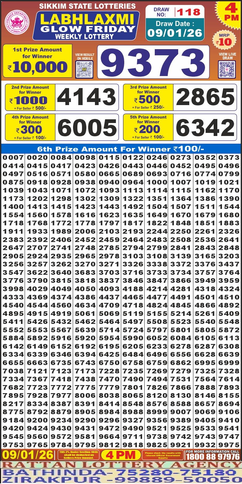 RESULT LABHLAXMI GLOW FRIDAY WEEKLY LOTTERY 09.01.2025