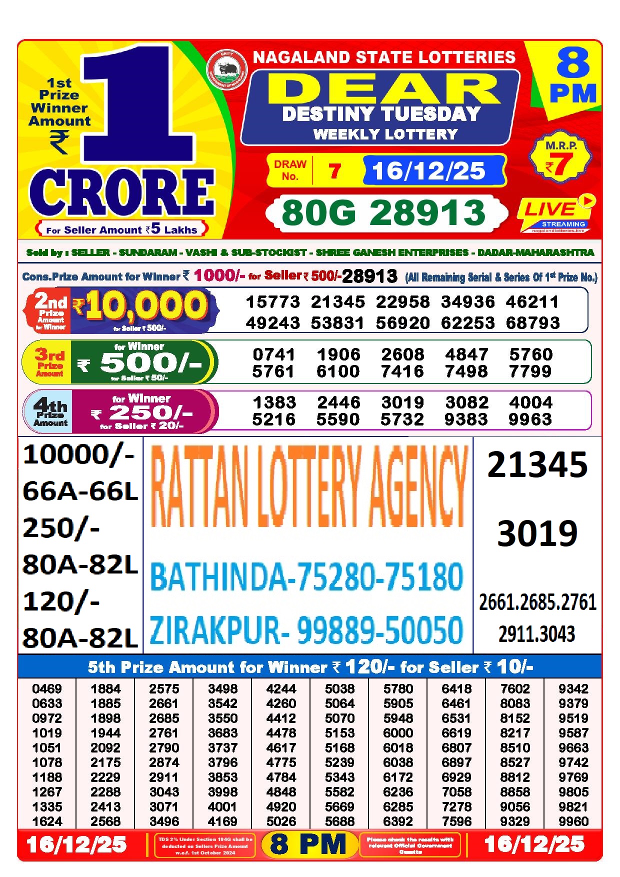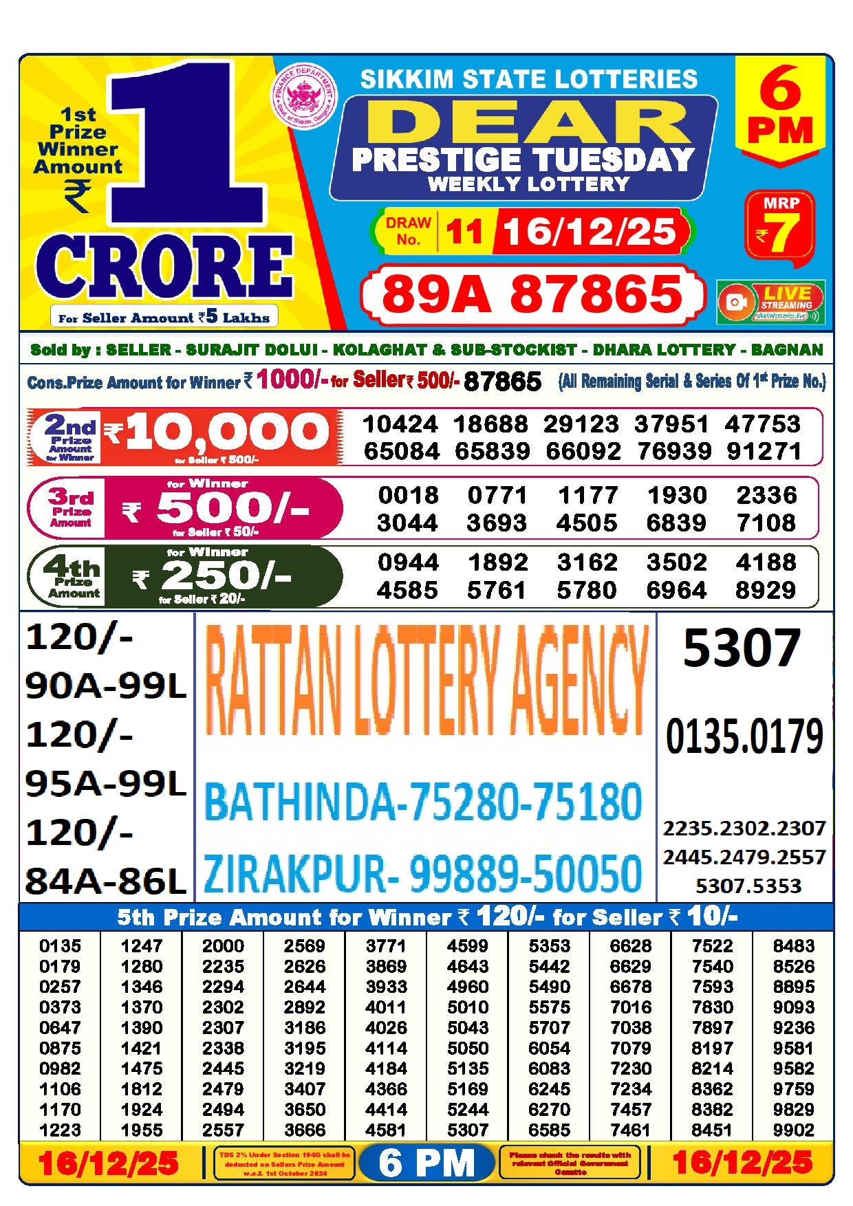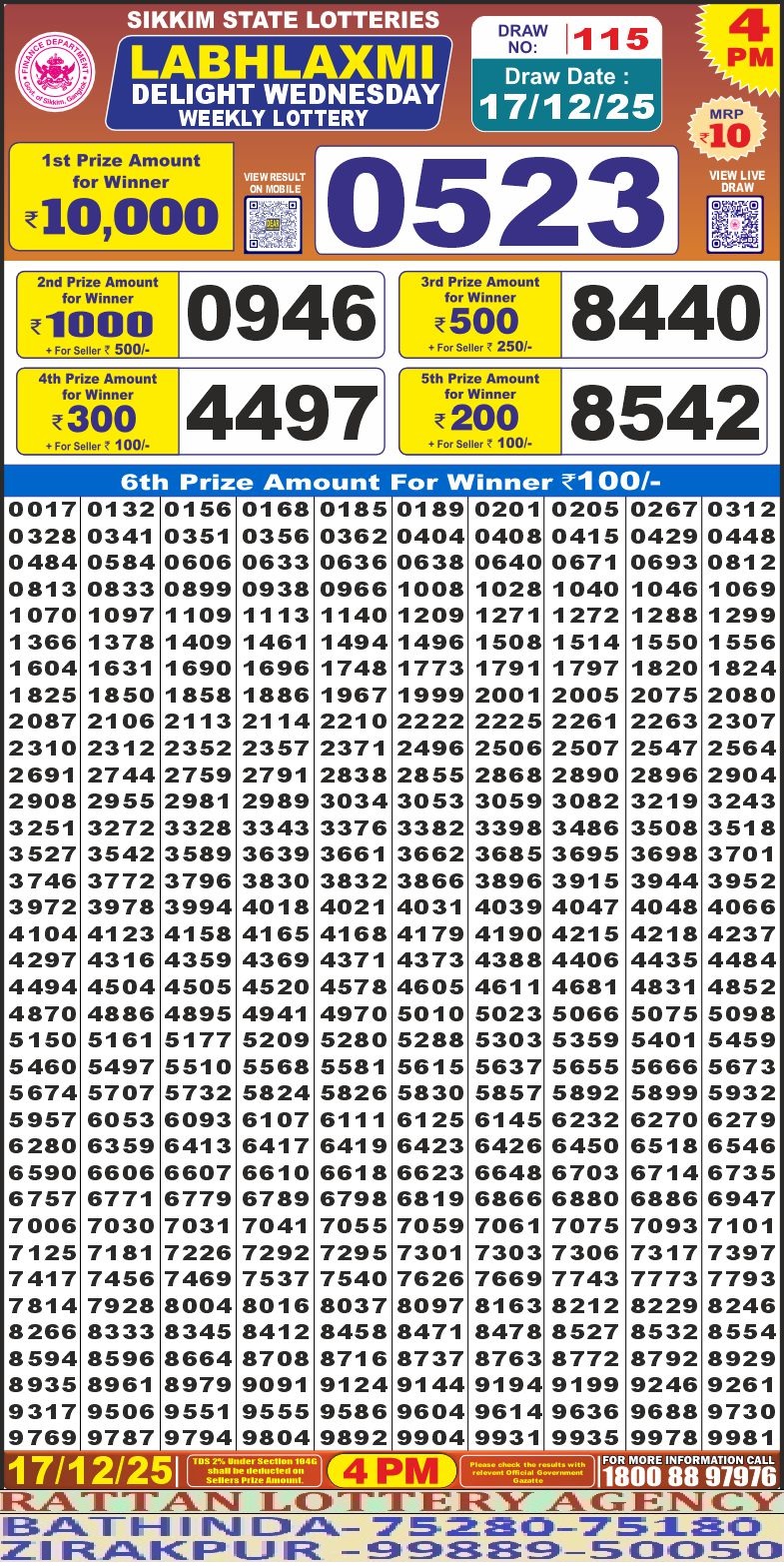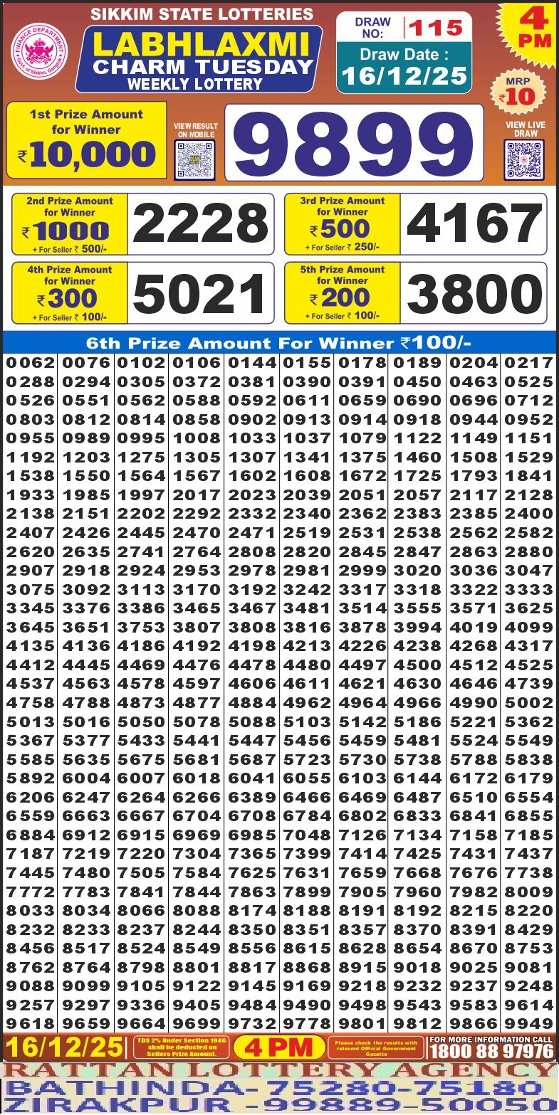 RESULT LABHLAXMI CHARM TUESDAY WEEKLY LOTTERY 16.12.2025