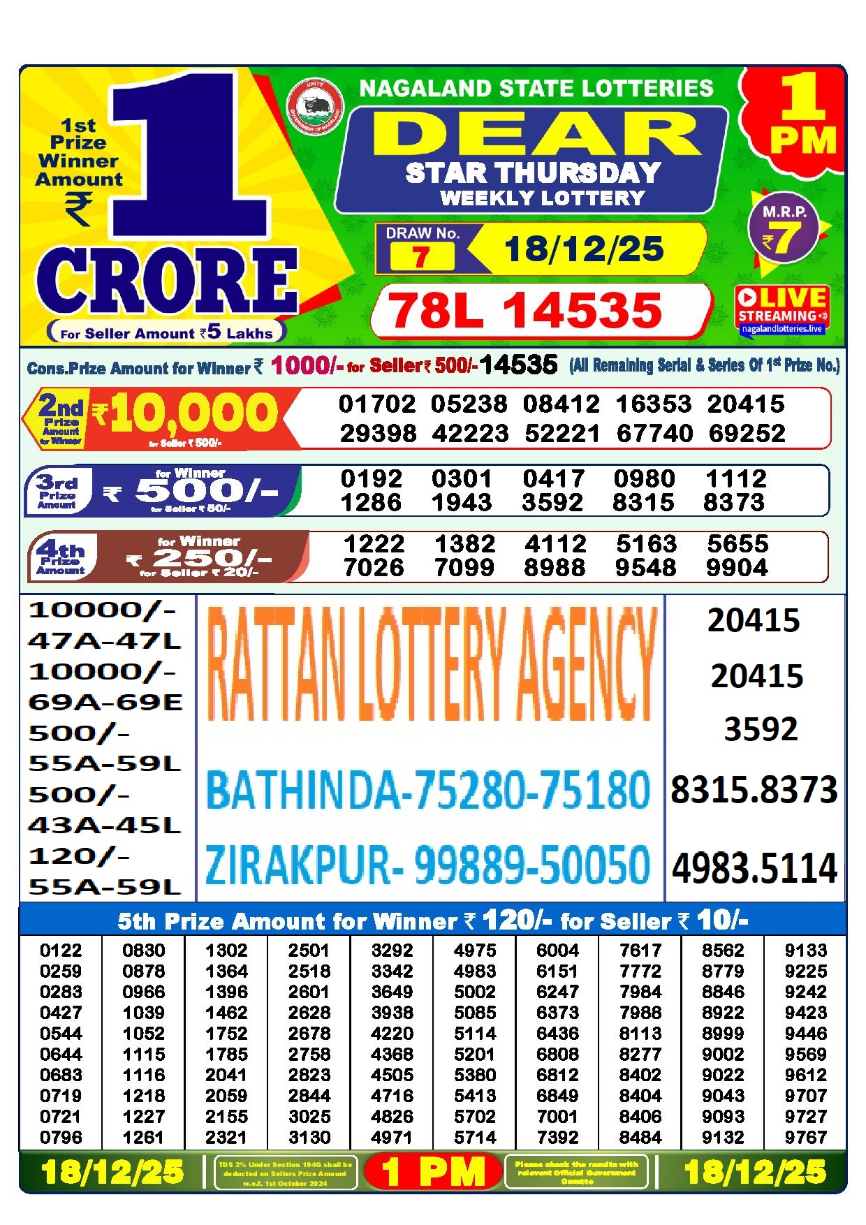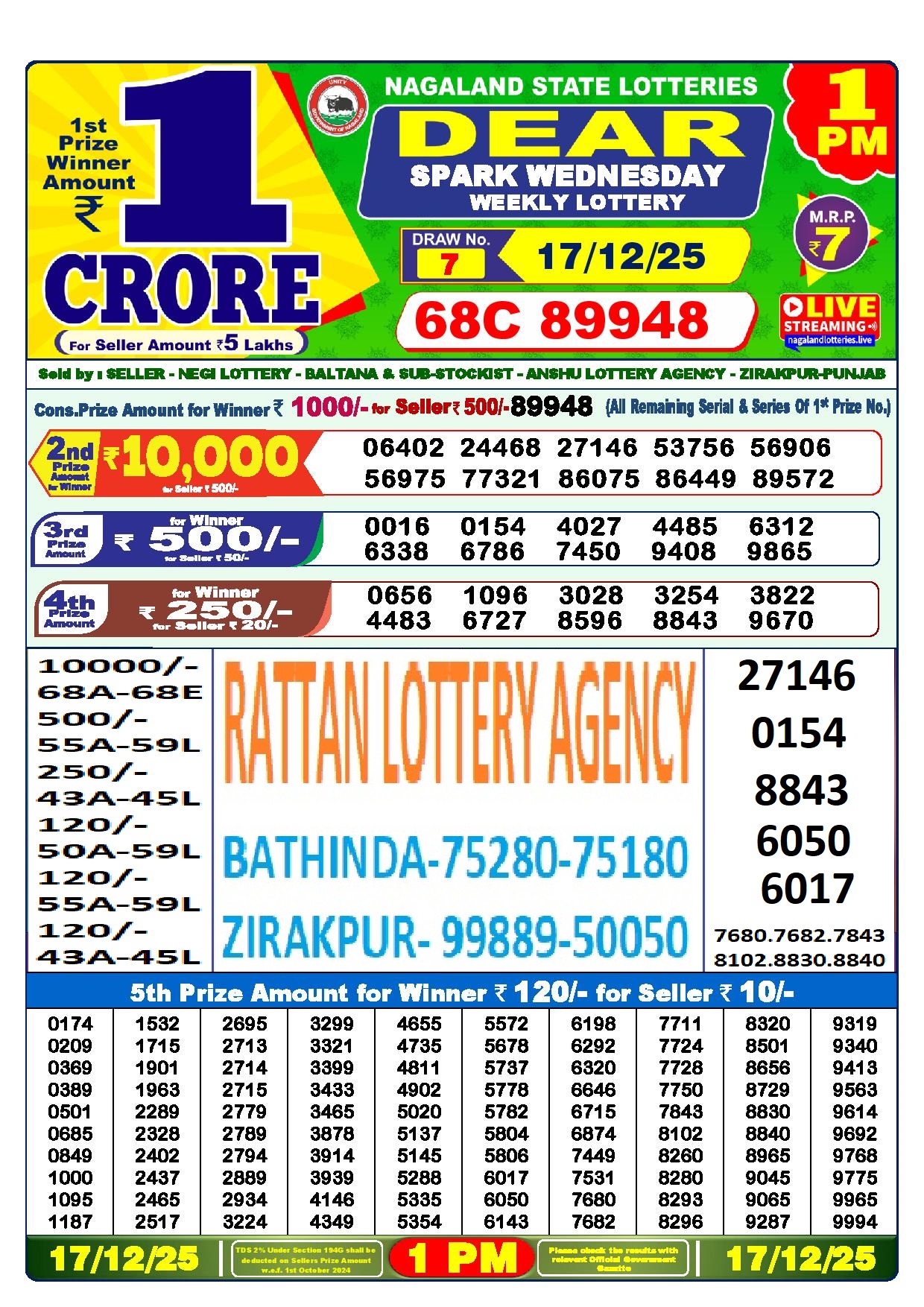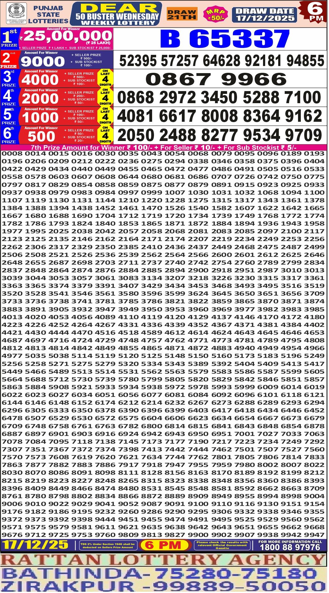 RESULT DEAR 50 BUSTER WEDNESDAY WEEKLY LOTTERY 17.12.2025