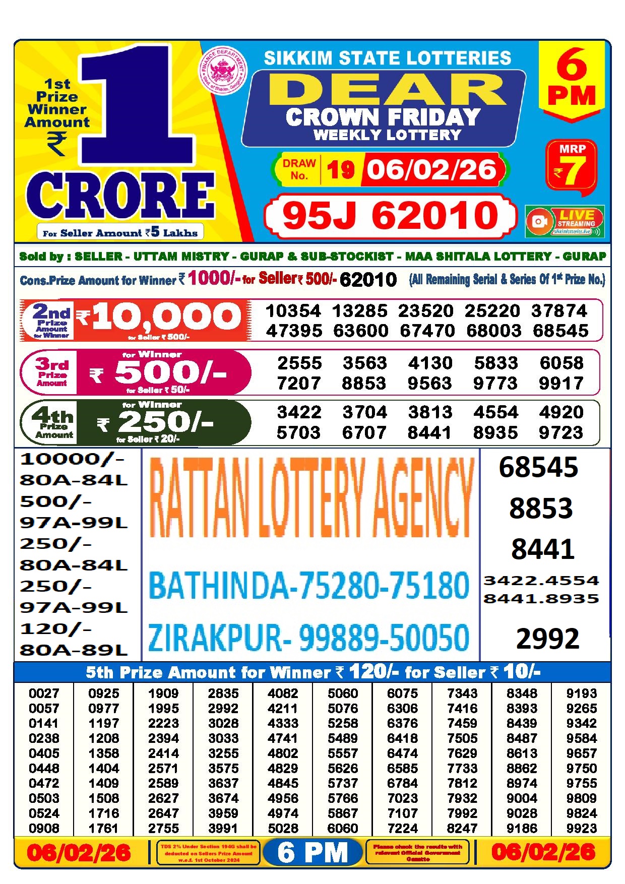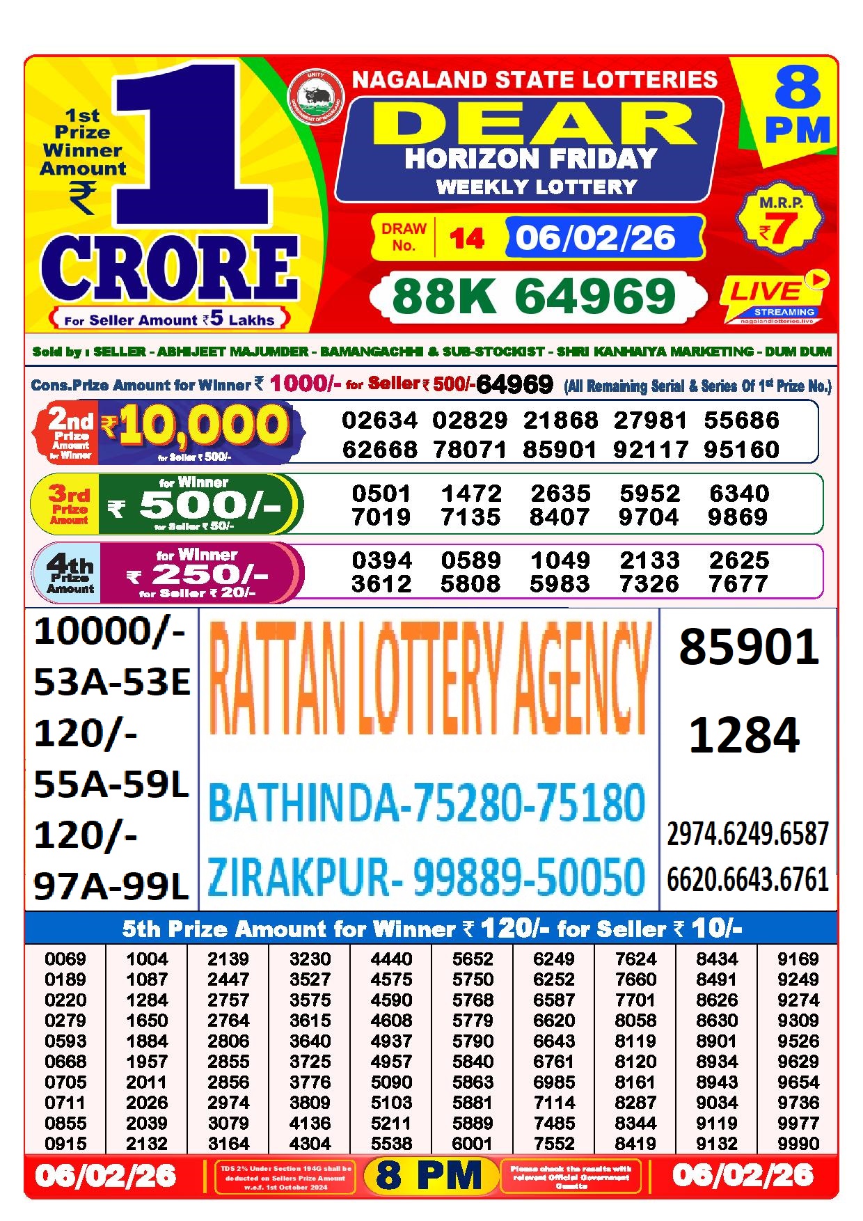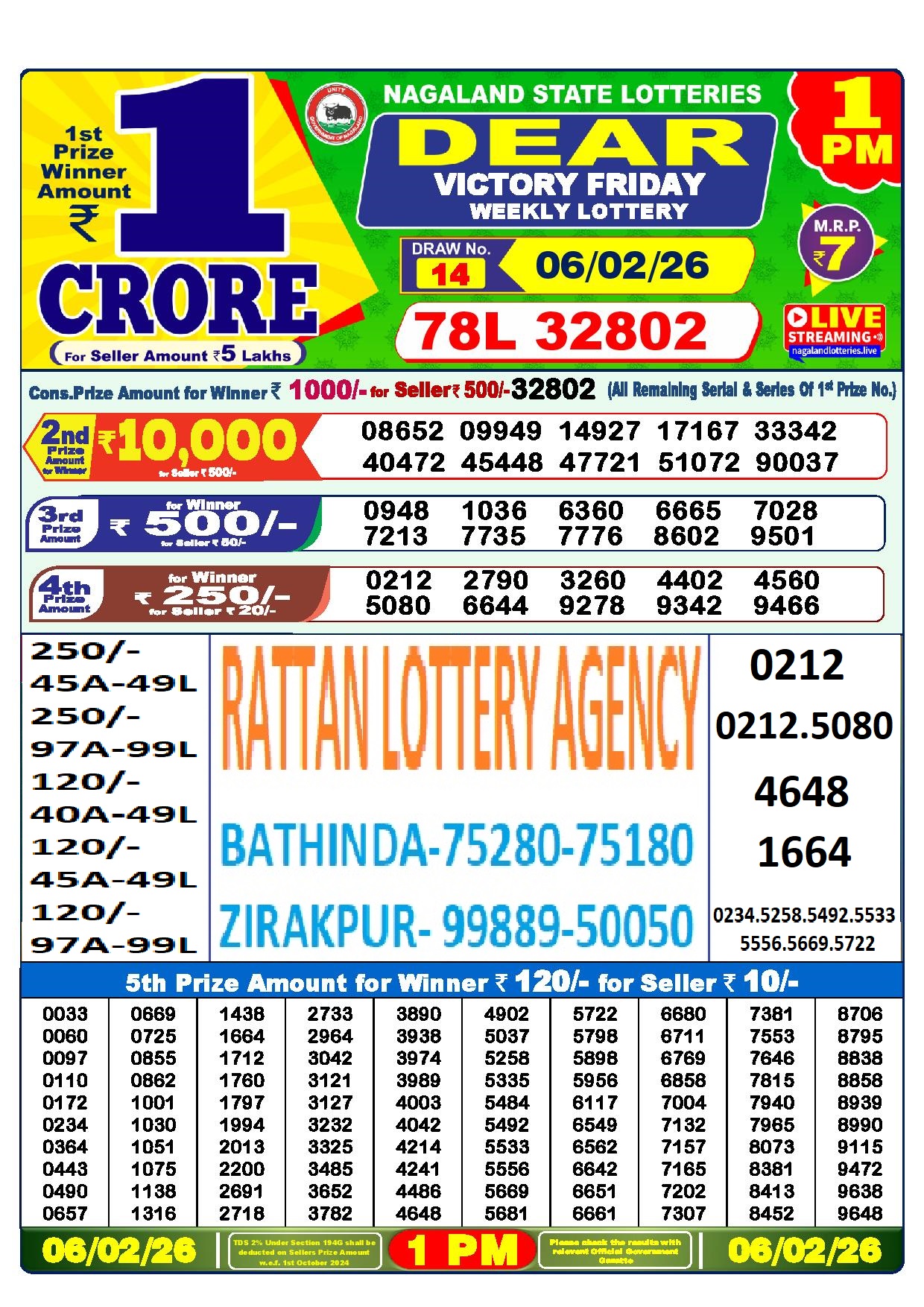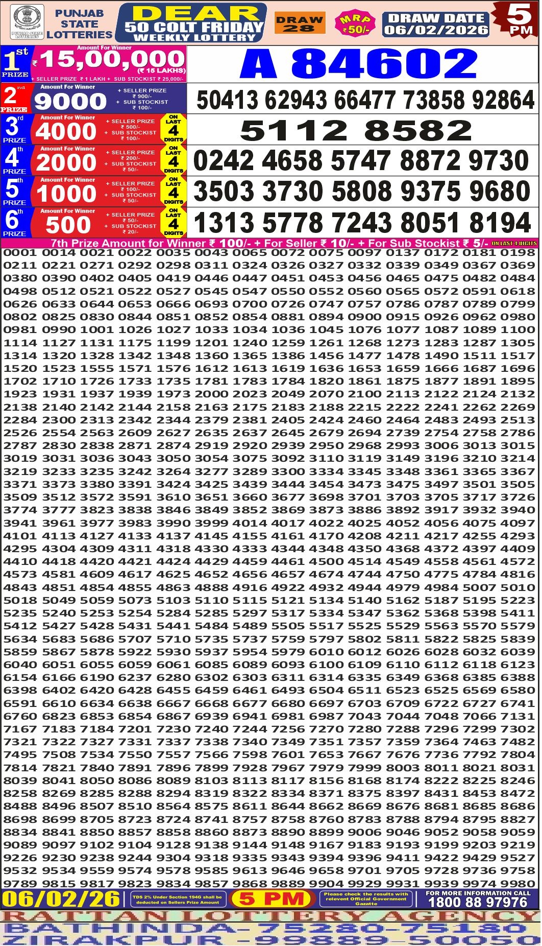 RESULT DEAR 50 COLT FRIDAY WEEKLY LOTTERY 06.02.2026