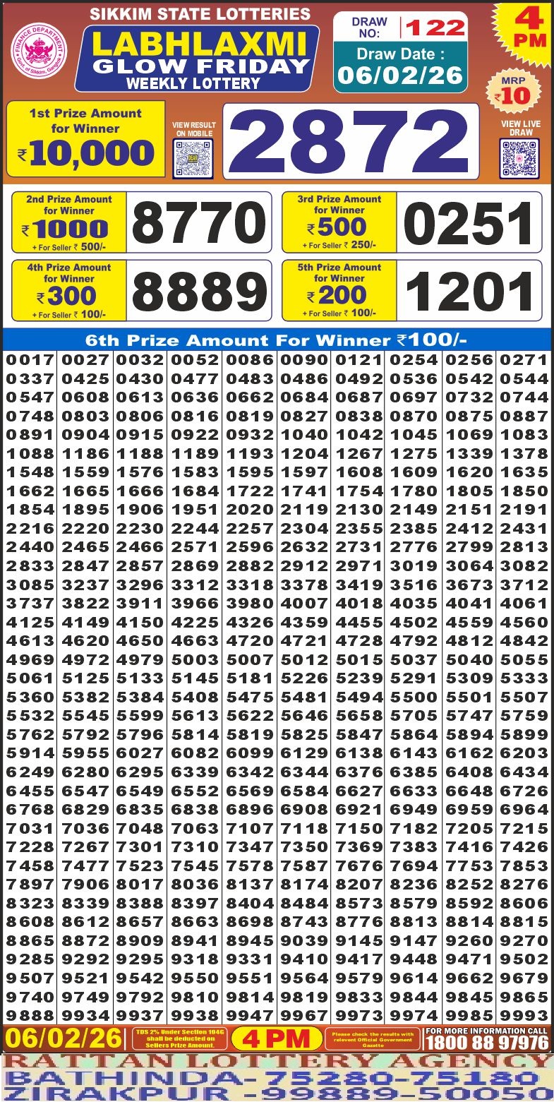 RESULT LABHLAXMI GLOW FRIDAY WEEKLY LOTTERY 06.02.2026