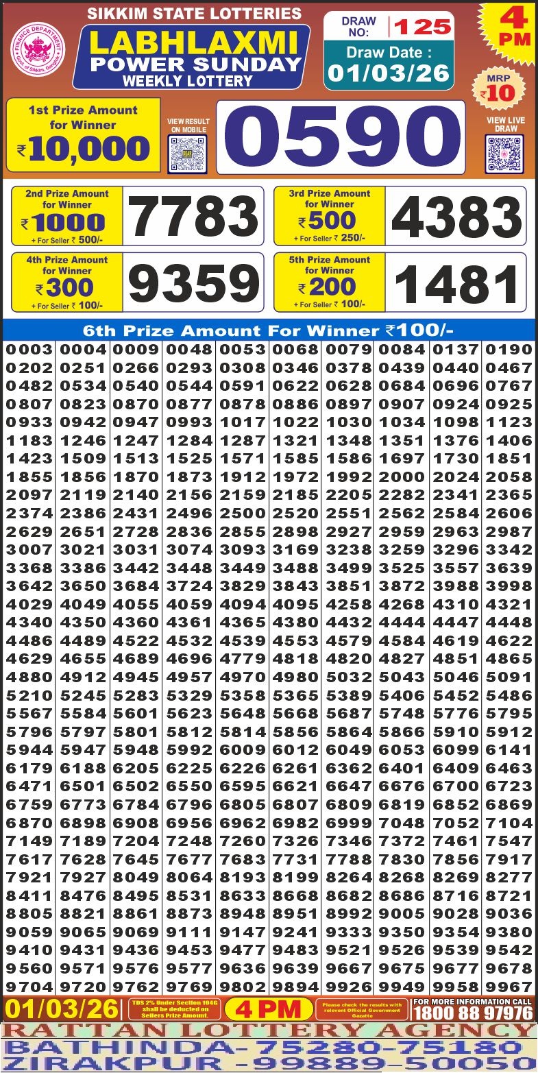RESULT LABHLAXMI POWER SUNDAY WEEKLY LOTTERY 01.03.2026