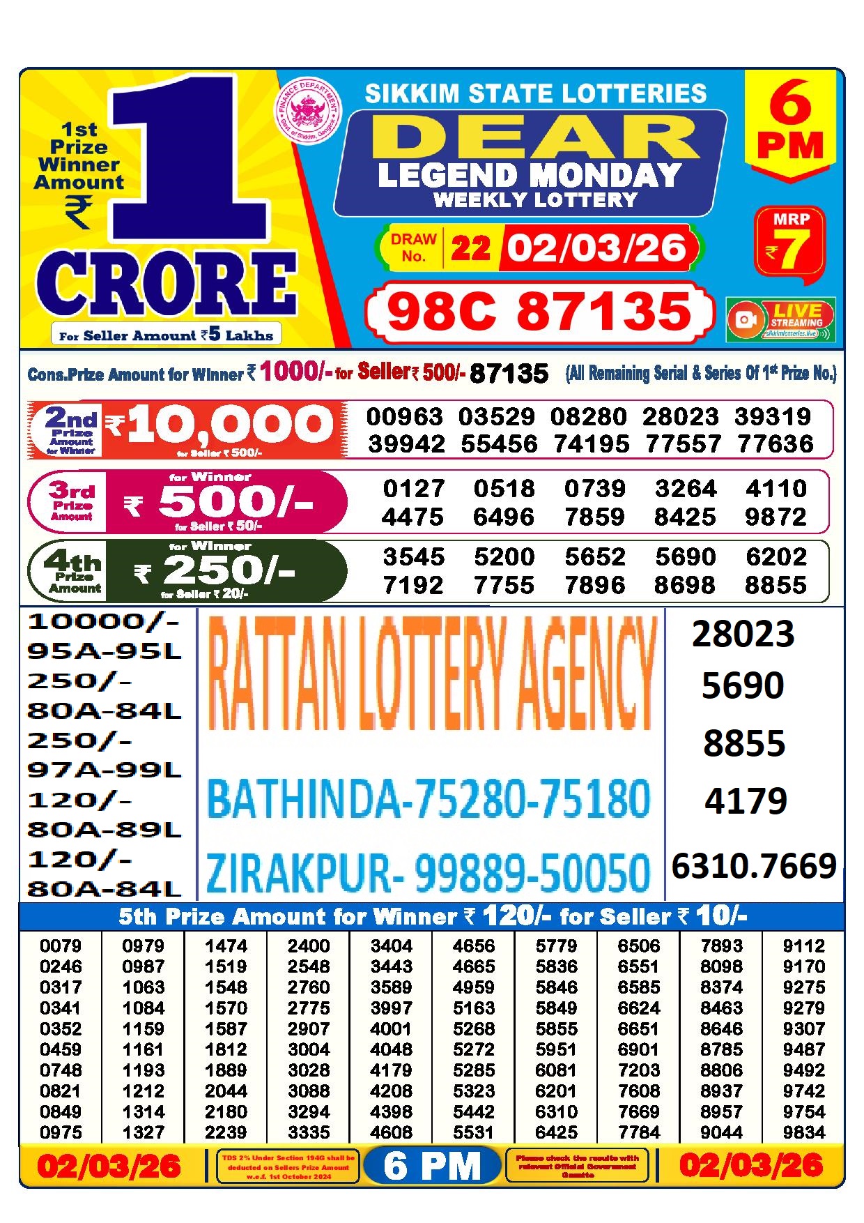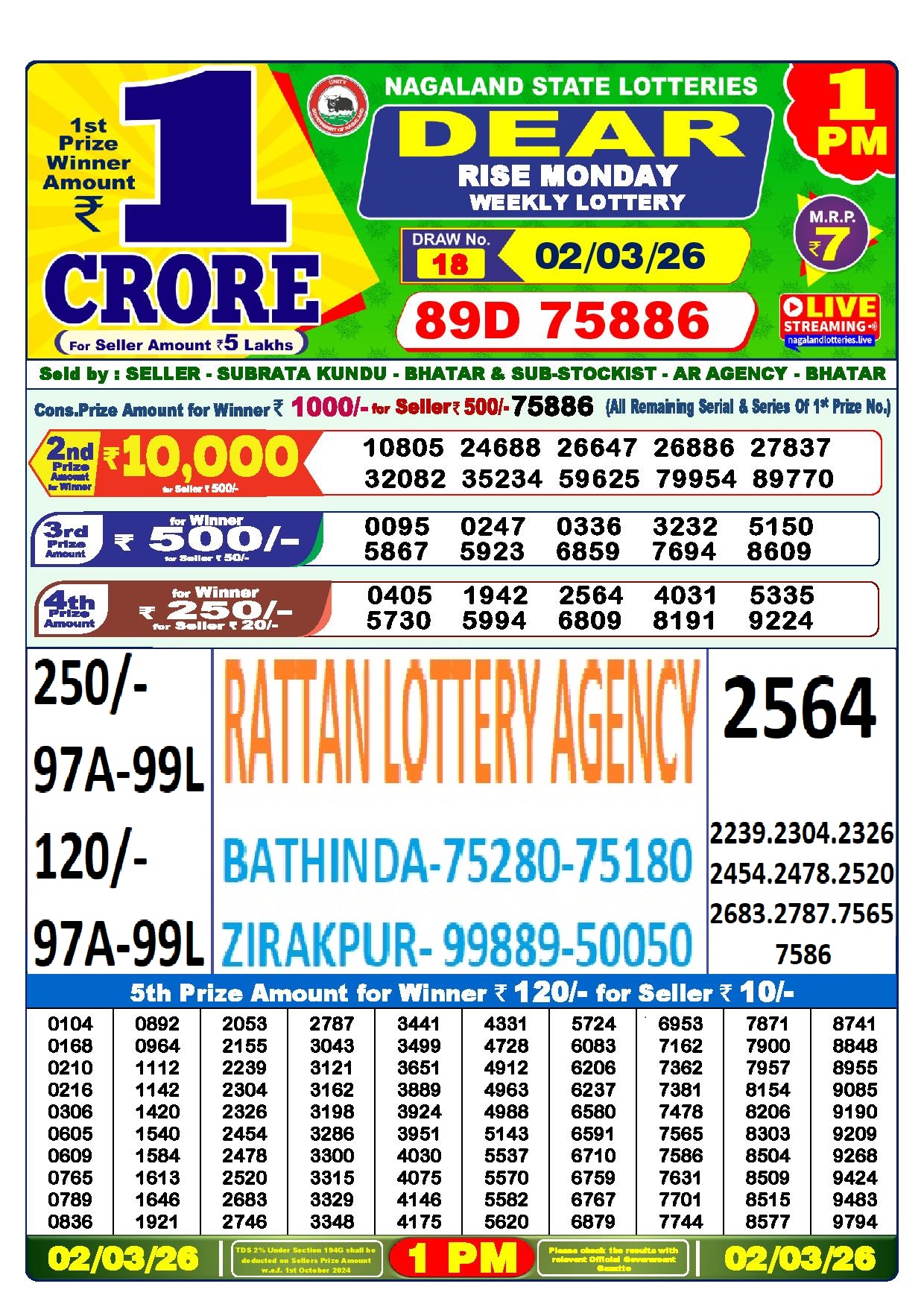 RESULT DEAR 50 BEAST MONDAY WEEKLY LOTTERY 02.03.2026