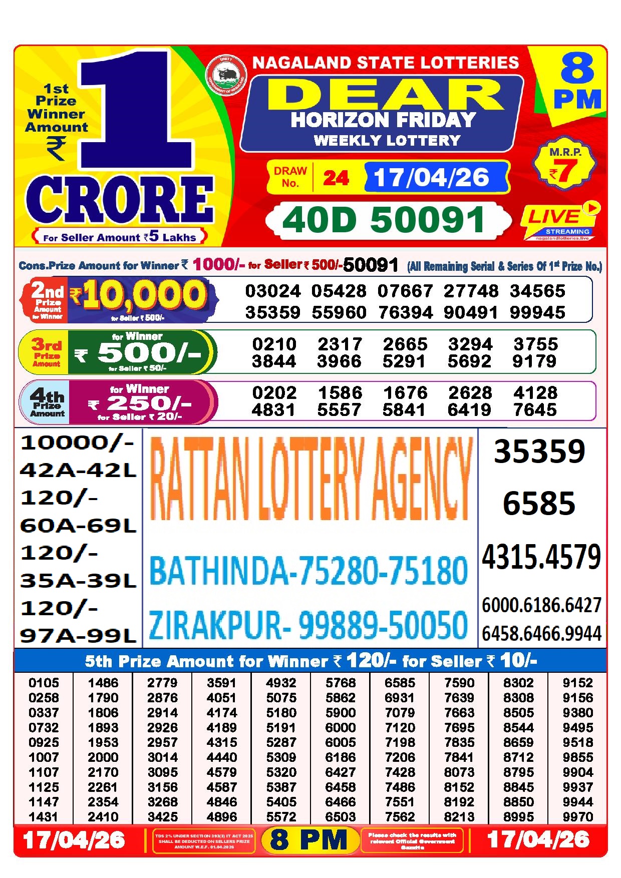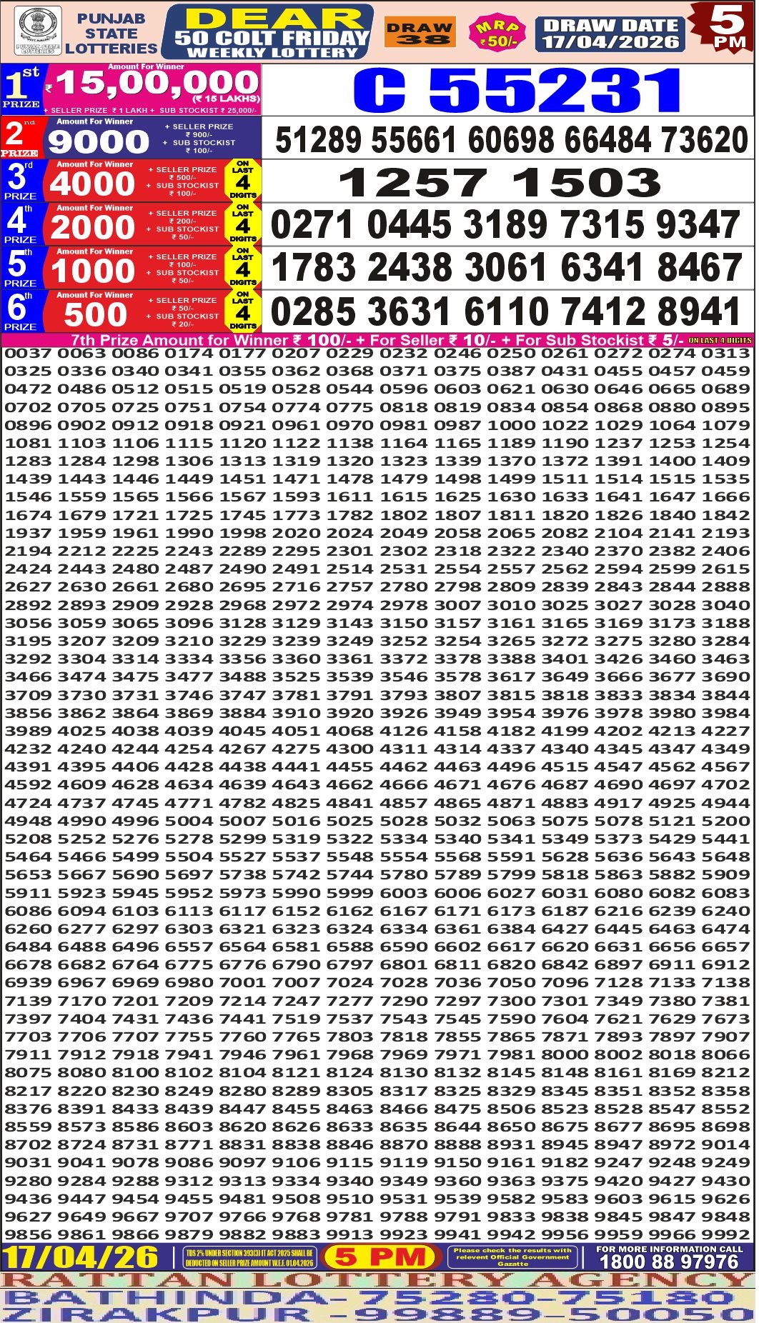 RESULT DEAR 50 COLT FRIDAY WEEKLY LOTTERY 17.04.2026