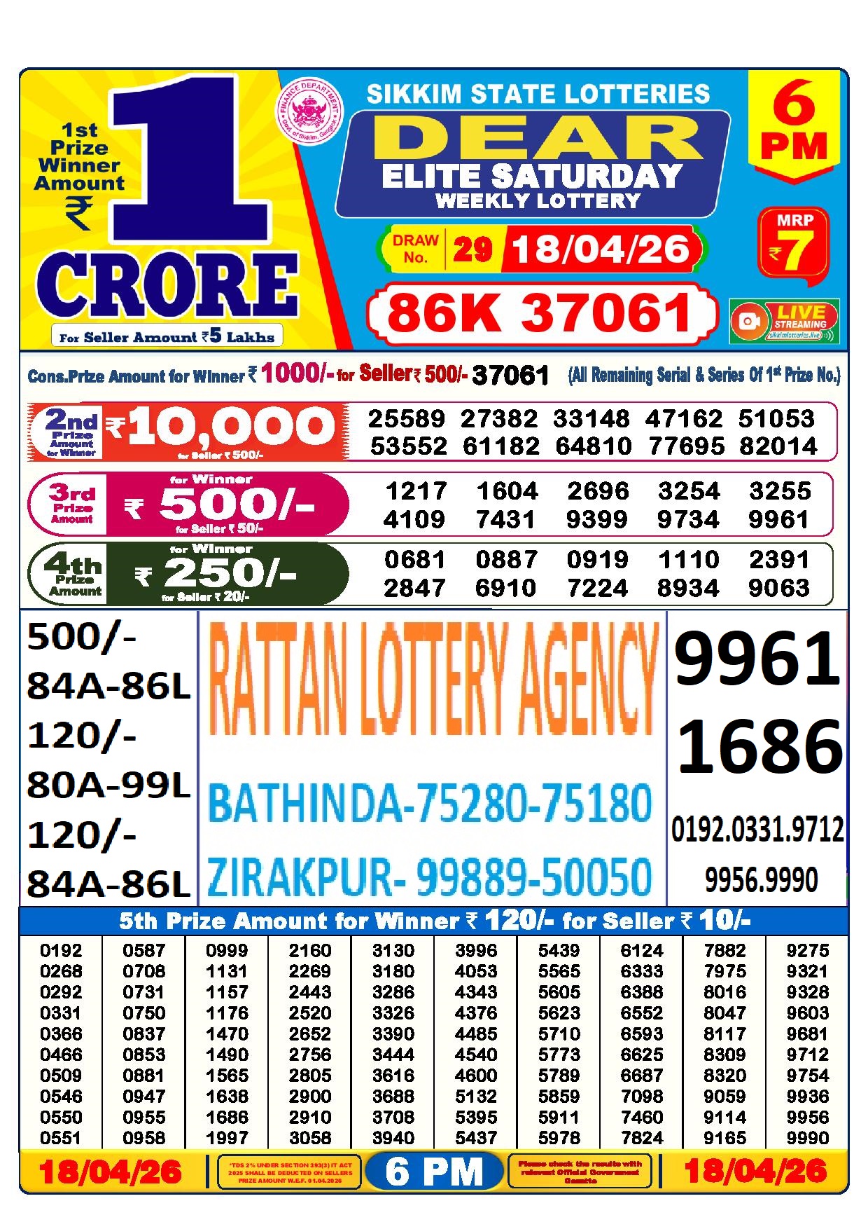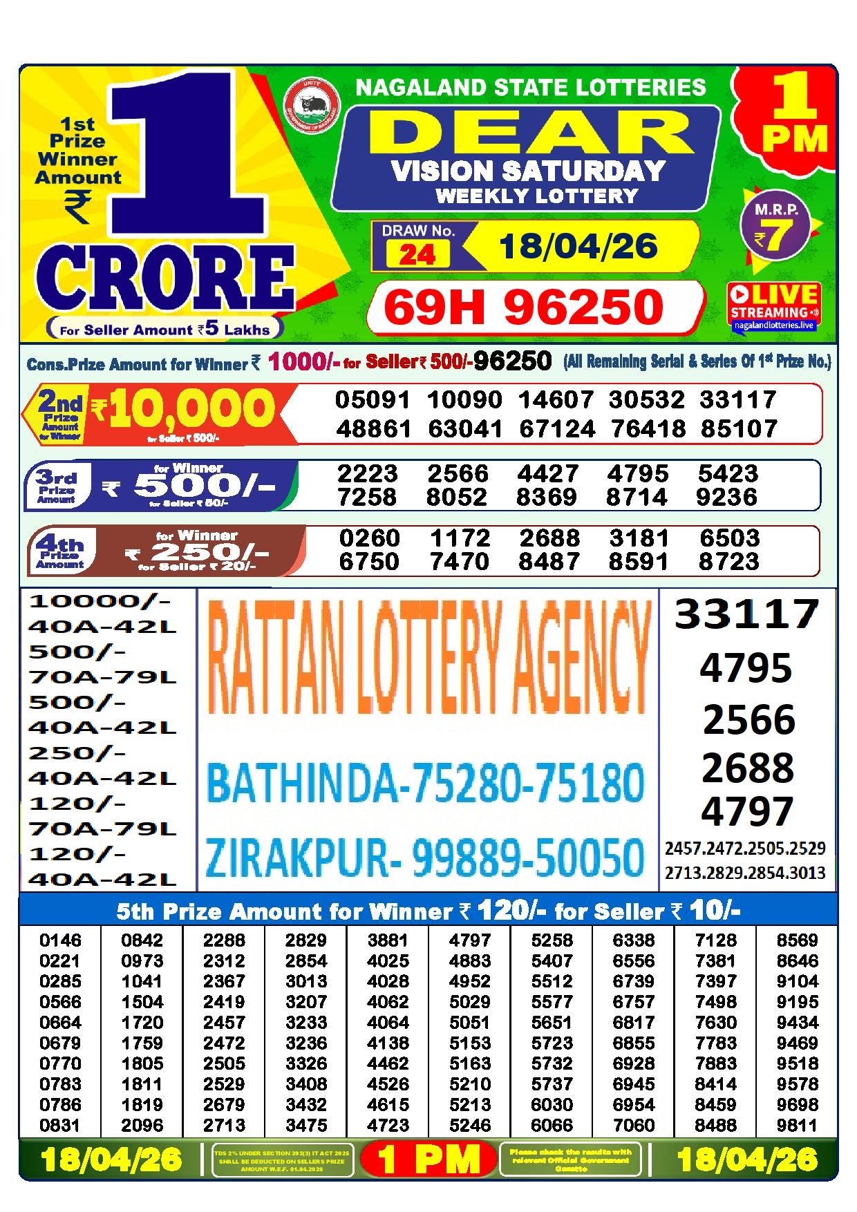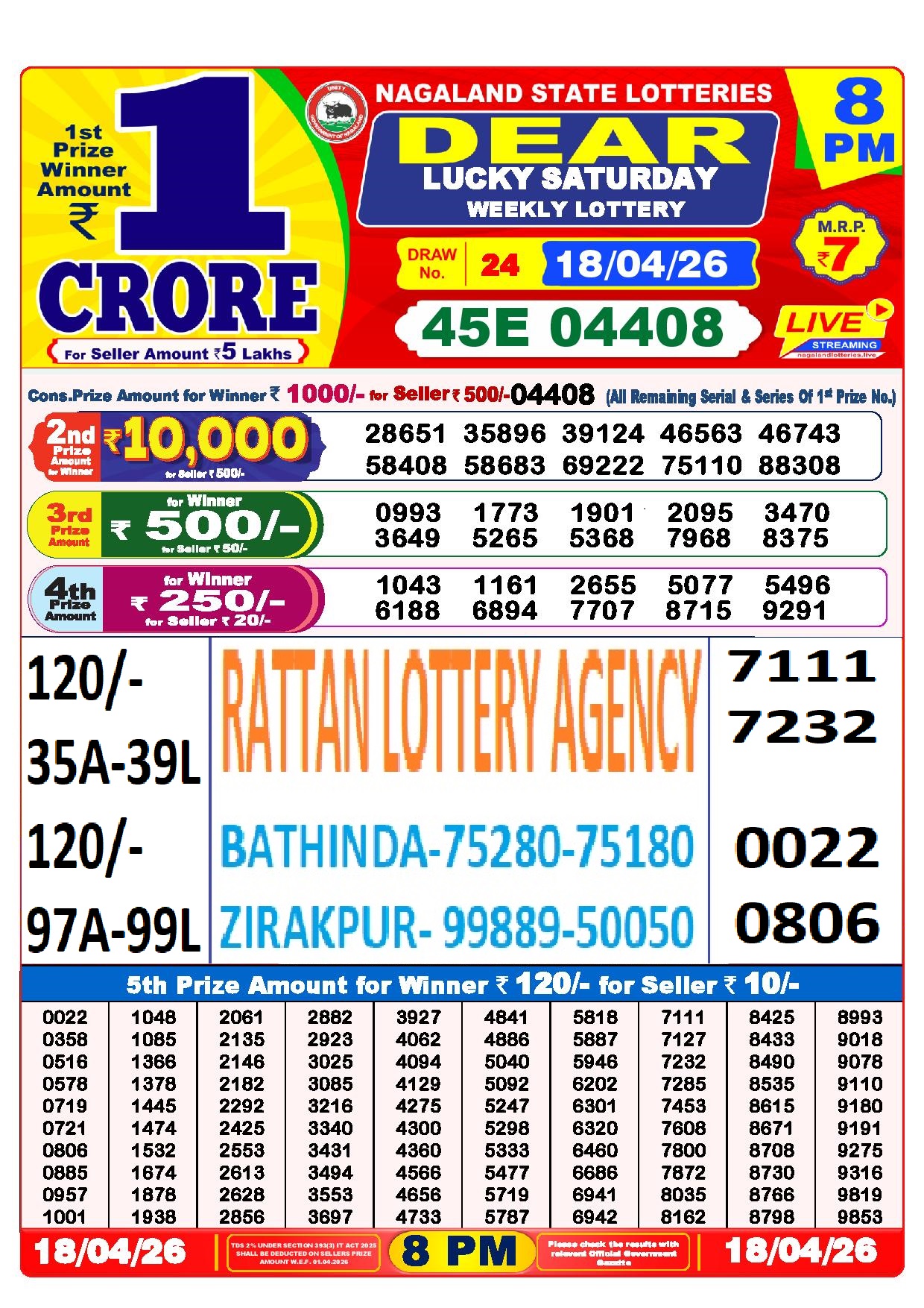 RESULT DEAR 50 JACKAL SATURDAY WEEKLY LOTTERY 18.04.2026