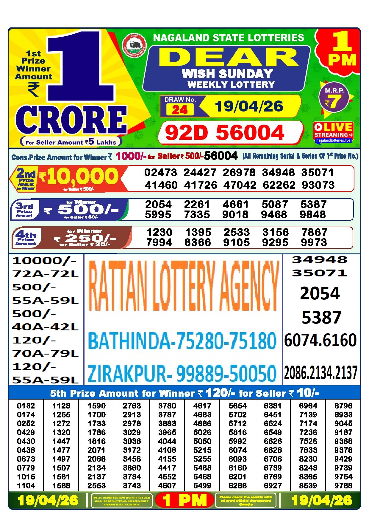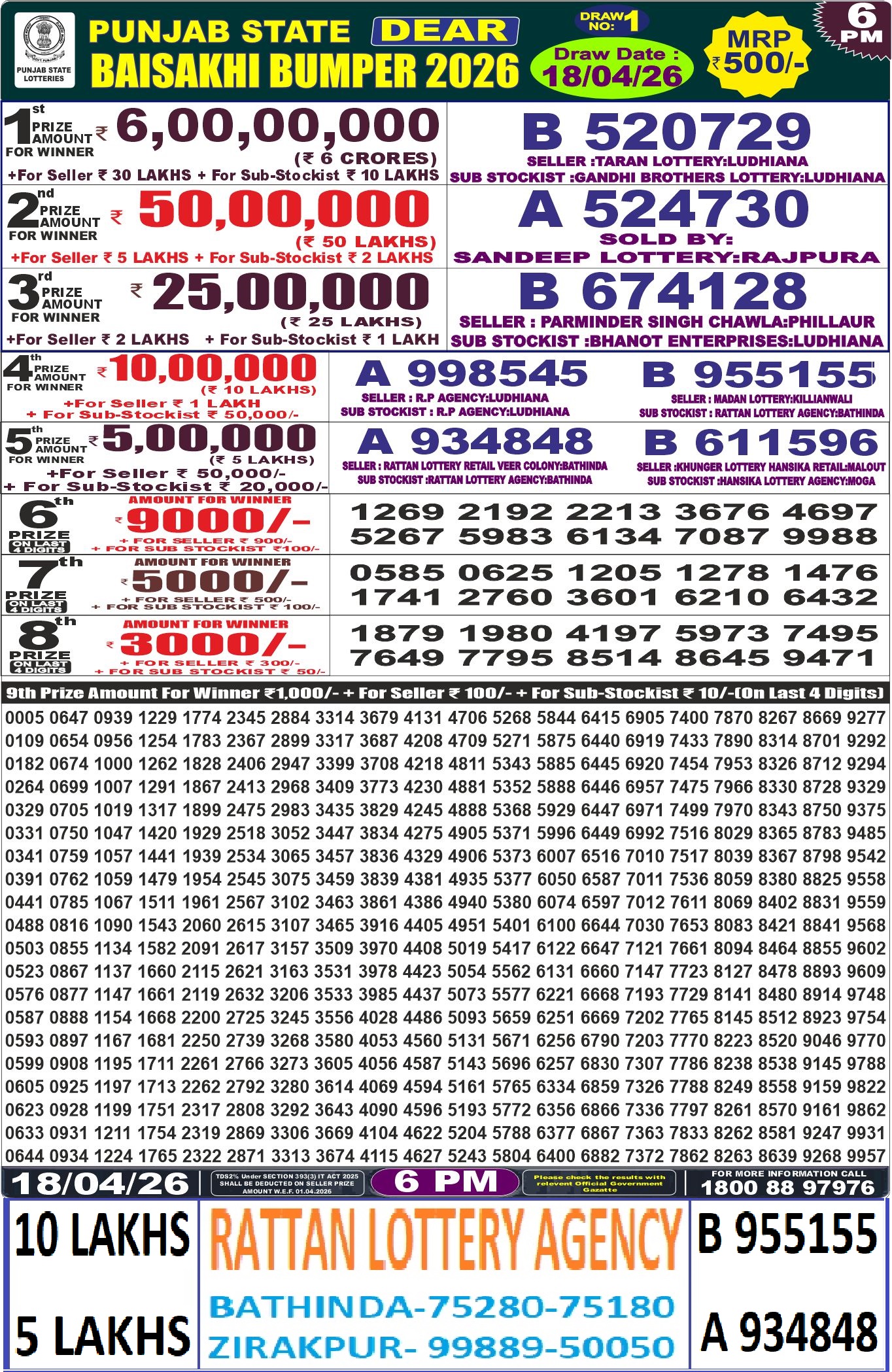 RESULT PUNJAB STATE DEAR BAISAKHI BUMPER 18.04.2026